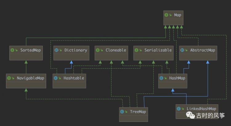 先來看一下整個 Map家族的集成關係圖,一看東西還不少,但其他的可能都沒怎麼用過,只有 HashMap 最熟悉。