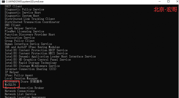 首先確保你已經安裝好數據庫MySQL。如果沒有可以參考宏哥的這篇文章:傳送門。查看有沒有安裝MySQL命令:net start,打開控制台(在開始,運行輸入cmd)然後出入“net start” 就是打開了服務看看列出來的有沒有 MySQL之類的如果沒有,就是沒有安裝。如下圖所示: