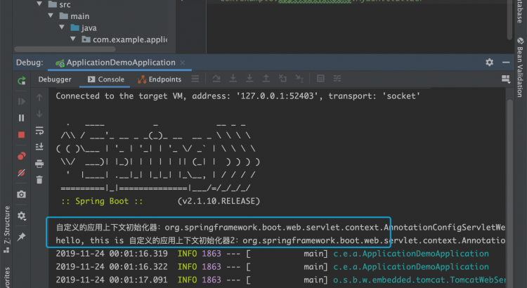 System.out.println("自定義的應用上下文初始化器:" + configurableApplicationContext.toString());