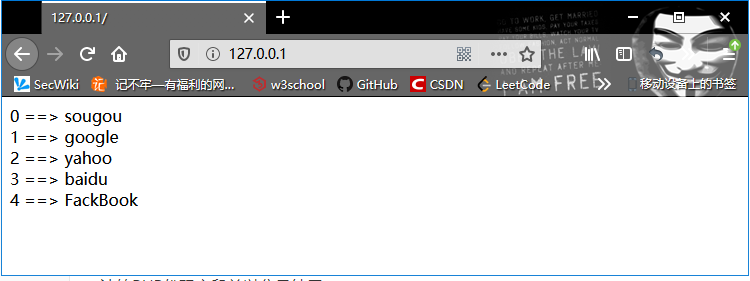 $arr = array("sougou","google","yahoo","baidu","FackBook");