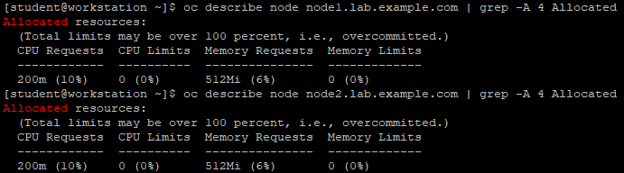 20 $ oc describe limitranges NAME		#查看項目中強制執行的限制約束