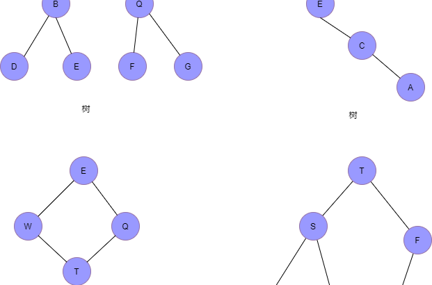 其中,第一、二、四個都是樹,第三個不是。樹的特點很明顯吧!
